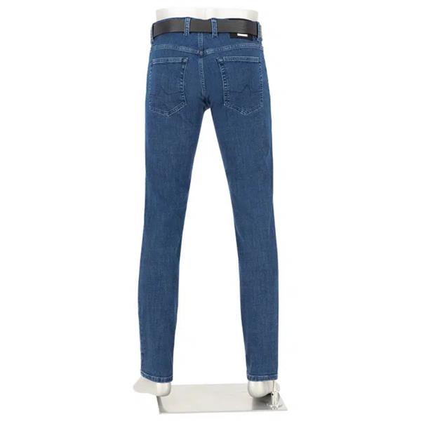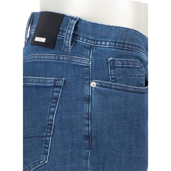 The blue hue of these jeans has a sophisticated look and, thanks to the special dyeing process, remains vibrant even after many washes. The combination of cotton and T400 elastomultiester ensures exceptional resilience – the jeans retain their shape while adapting to every movement. With their clean look and regular fit, they work equally well in business settings and as part of a smart casual wardrobe. The additional Safe Pocket on the inside left waistband provides secure storage for valuables. In this model, ALBERTO combines over 100 years of trouser expertise from Mönchengladbach with state-of-the-art fiber technology.