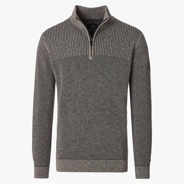 This pullover offers exceptional comfort thanks to its high-quality cotton, known for both comfort and durability. The stand-up collar with a zipper provides excellent wind protection, making it a reliable companion in any weather. Its classic design is versatile and easy to combine with other garments, such as a T-shirt, jeans, trousers, jacket, or shirt jacket. The timeless style is perfect for walks, leisure activities, city trips, or relaxing at home or on the go. The garment boasts robust, easy-care construction and a consistently good fit. Ideal for those who value functionality and classic style.