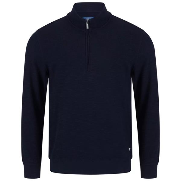 Navy regular fit cotton-blend knit structure design 1/2 zip sweatshirt