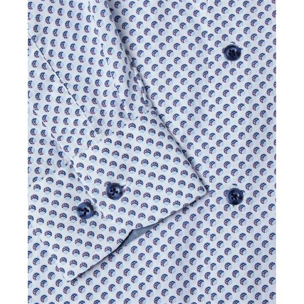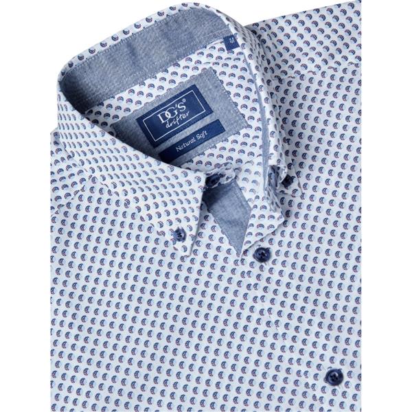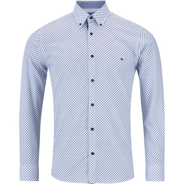 Blue and white regular fit cotton shirt with geometric design and ivano collar