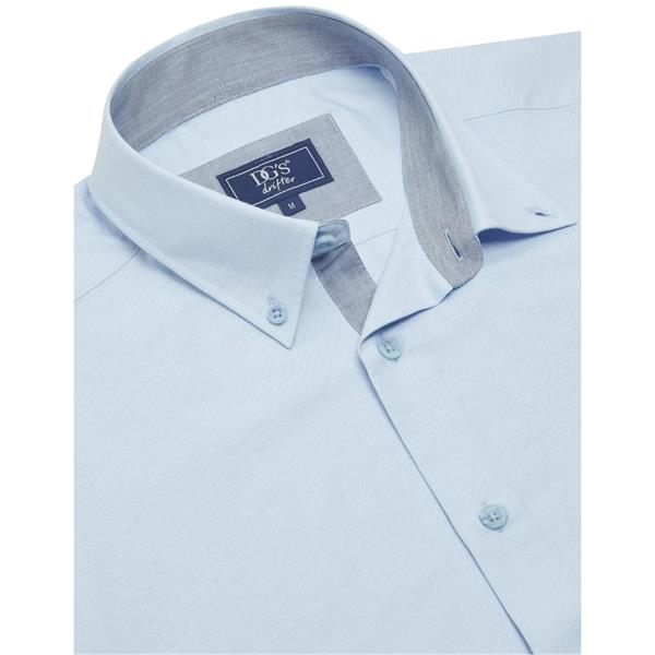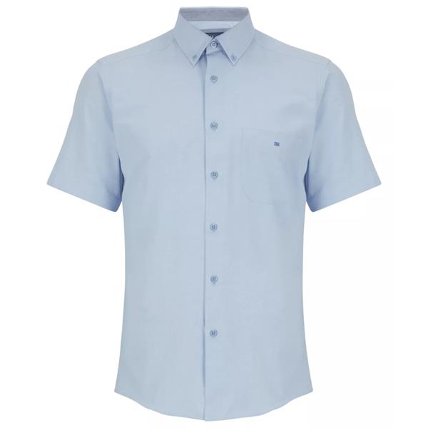 Light blue regular fit cotton-blend short sleeve shirt and ivano collar