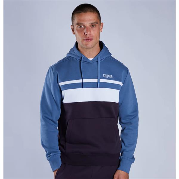 A colour blocked super soft sweat fleece hoodie with a DIESEL raised rubber print on the chest & branded drawcords.