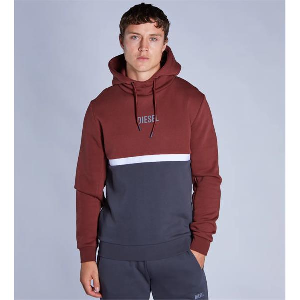 Soft, brushed interior fleece hoodie with DIESEL branding at chest, branded chest tape, contrast paneling front and back. Details include cosy hood design, concealed sleeve pocket, ribbed cuffs and hem for comfort.