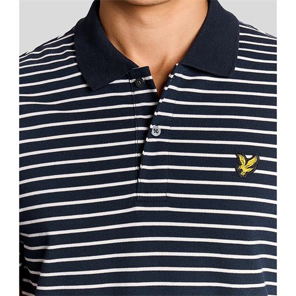 -Classic Breton stripe design-Structured contrast polo collar with button placket-Ribbed cuffs for a sharp finish-Embroidered Golden Eagle on the chest