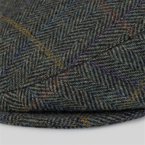 A classic and understated tweed, peaked flat cap in a moss green check crossed with rich purple, blue & deep yellow for added depth and character.