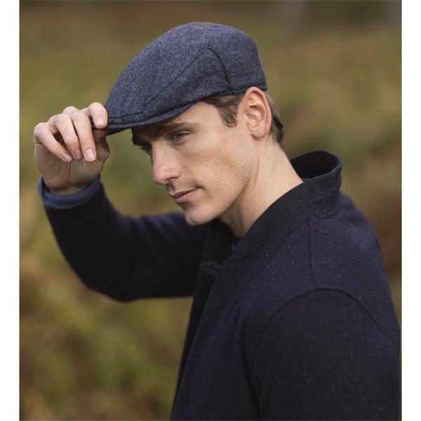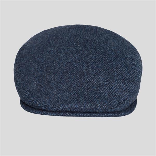 A classic and understated Donegal Tweed flat cap in a tonal blue and navy herringbone.
