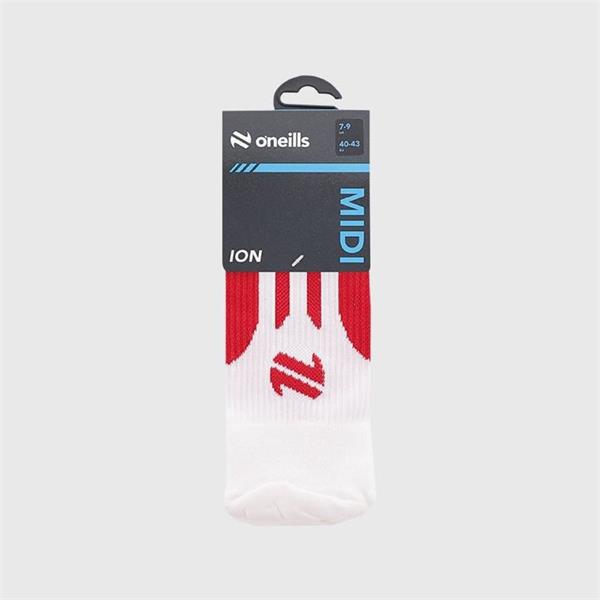 Discover the O’Neills Ion Midi Socks Red / White. Designed for optimal performance using COOLMAX® technology, our Ion Midi Socks transports moisture away from your feet, keeping you cool and dry. Ideal for sports, the gym and training sessions, our sports socks feature reinforced ankle & arch support as well as seamless toe & cushioned soles, ensuring complete comfort.