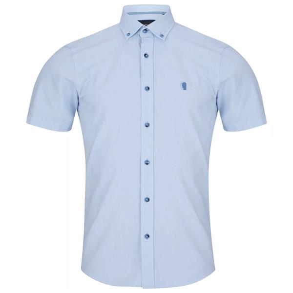 Blue tapered fit oxford cotton short sleeve shirt and classic pointed collar