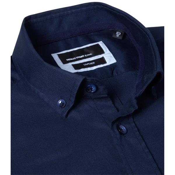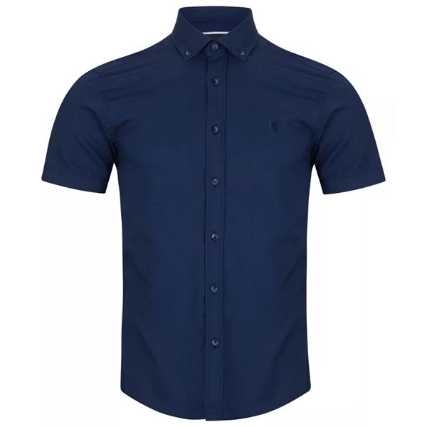 Navy tapered fit oxford cotton short sleeve shirt and classic pointed collar