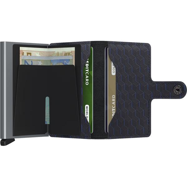 Small in size and surprisingly large in storage capacity, the Miniwallet combines the best of both worlds. The exterior holds banknotes, receipt and cards, while the aluminium Cardprotector allows you to slide out cards with one simple motion and protects them from bending, breaking and unwanted wireless communication.