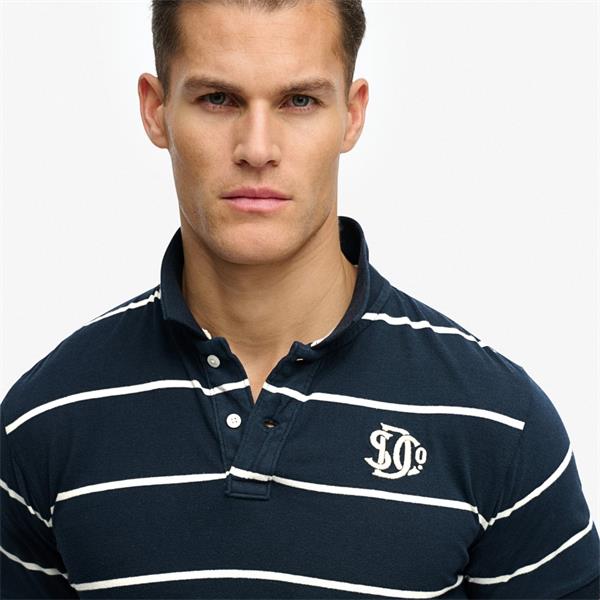 Our Vintage Stripe Jersey Polo Shirt is an expertly crafted addition to your wardrobe rotation. Designed with a ribbed collar and a classic polo silhouette, you can pair it with anything for a continuously stylish look.