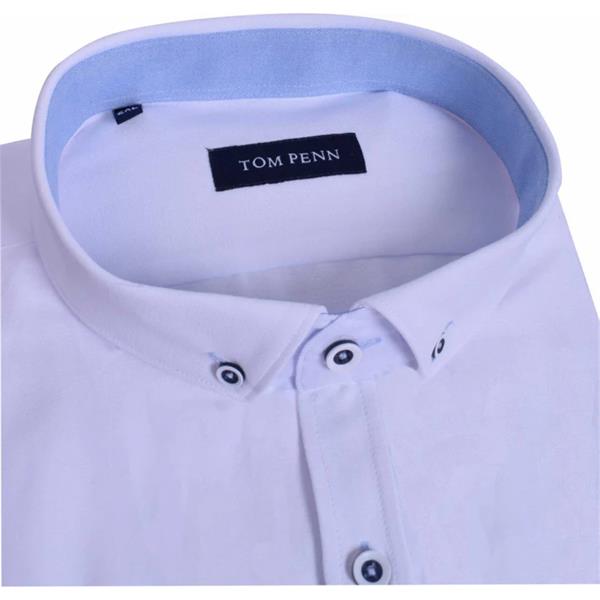 The TP828 White Tom Penn Short Sleeve Oxford Shirt features classic trims and detailed stitching that highlight its quality craftsmanship. Designed with a tapered fit, it offers a modern, streamlined silhouette while maintaining timeless style. Crafted from durable Oxford fabric, this shirt ensures comfort and breathability, making it perfect for warm-weather wear with a polished, short-sleeve look.