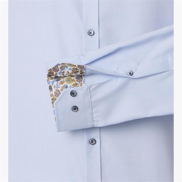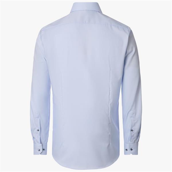 This business shirt impresses with its slim, close-fitting cut, lending a modern edge to any outfit. The textured pattern adds a distinctive touch and gives the classic design an individual flair. A high-quality Kent collar completes the elegant look, making the shirt ideal for the office, meetings, city breaks, or formal occasions. The fine cotton fabric feels pleasant against the skin and offers exceptional comfort. This shirt can be stylishly combined with a jacket, dress trousers, waistcoat, bow tie, and pocket square. The absence of breast pockets ensures a clean and sophisticated overall appearance. It represents a stylish and high-quality look.