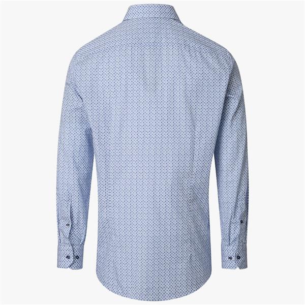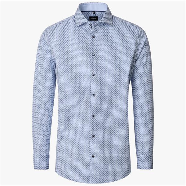 This business shirt is a contemporary companion that will stylishly support you in the office, at business meetings, or even at formal occasions. The modern fit accentuates a well-groomed silhouette without feeling restrictive and adapts effortlessly to your everyday life. Thanks to the shark collar, the shirt has an elegant look, ensuring you make a confident impression at every event. The fashionable minimalist print, applied as a high-quality print to the fabric surface, subtly softens the classic style and makes the shirt versatile enough to be combined with trousers, jeans, or a bomber jacket. The long sleeves ensure you are always appropriately dressed, whether for business or evening wear. You'll benefit from pleasantly soft cotton, which provides exceptional comfort and maintains a polished appearance even after long days. This shirt combines reliability with stylish modernity – so you always feel confident and comfortable, no matter what your next event may be.